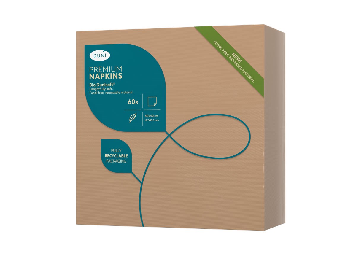 Möt Bio Dunisoft® – elegant mjuka och briljant mångsidiga premiumservetter perfekta för företag med ett öga för kvalitet. De tillverkas av förnybara material i många olika storlekar och härliga färger, så att de tillför både stil och känsla till varje dukning.
