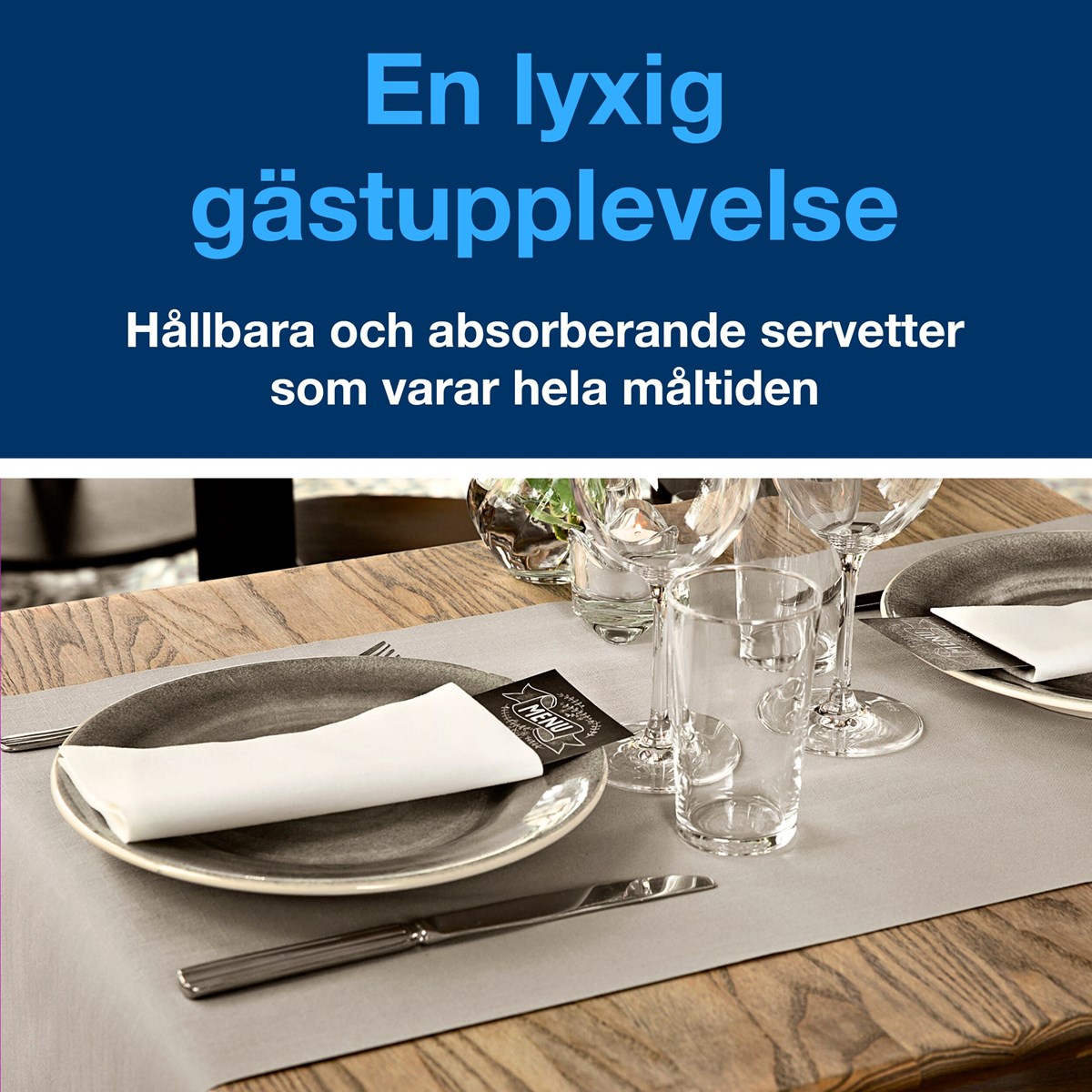 Gör ett fantastiskt första intryck i fullbetjäningsrestauranger med högkvalitativa LinStyle® Middagsservett. Med sin känsla av linne är den mjukare och tjockare än vanliga pappersservetter och ger ett elegant intryck. Suverän hållbarhet gör att restaurangservetterna varar under hela middagen, vilket minskar kostnader och förbrukning. Samtidigt ser den höga absorptionsförmågan till att personal enkelt kan städa upp spill. Med engångsservetter slipper personalen också tvättbesvären som kommer med textilservetter. 1-lagers. Premium-kvalitet. Mått vikt: 19,5x19,5 cm. Mått ovikt: 39x39 cm.