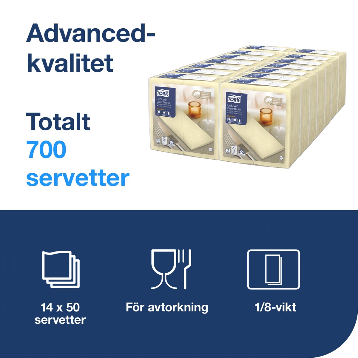 I restauranger med full service är det viktigt att visa gästerna att du bryr dig med hjälp av servetter av hög kvalitet. Servetter ger inte alltid samma lyxiga känsla och hållbarhet som tygvarianter, men våra högklassiga LinStyle® servetter känns som linne och håller genom hela måltiden. Dessa engångsservetter är förvikta och kräver ingen tvätt, vilket låter din personal fokusera på gästens upplevelse. Mått vikt: 19,5x9,8 cm. Ovikt: 39x39 cm.
