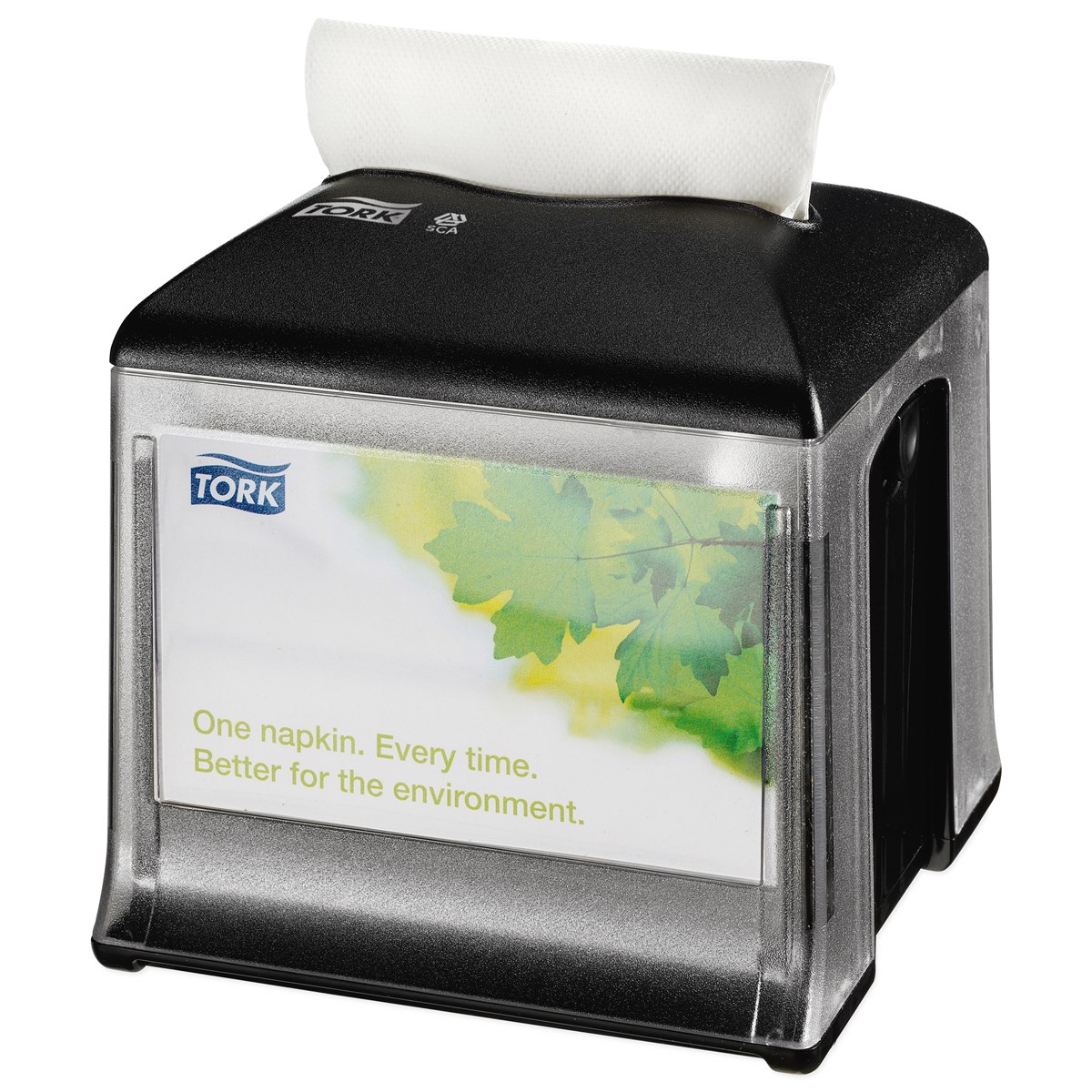 Liten, smidig servetthållare perfekt för caféer, barer och liknande. Tillverkad i svart plast. Matar ut en servett i taget, vilket förbättrar hygienen och minskar förbrukningen med minst 25 % jämfört med traditionella servettdispensrar. Rymmer 225 st N10-servetter. Anpassningsbar reklamruta fungerar som ett verktyg för att marknadsföra dina produkter och kommunicera med gästerna.