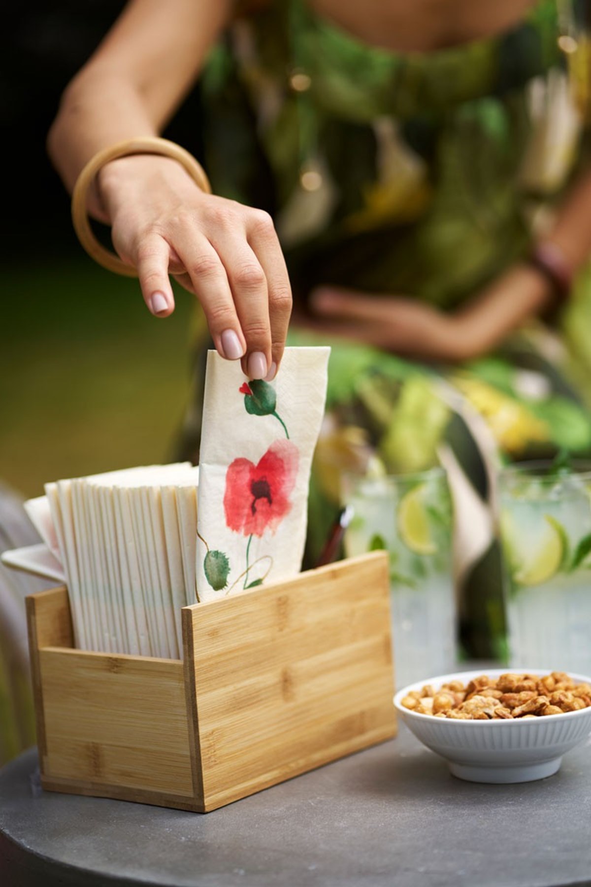 Platsbesparande Flexibel och praktisk dispenser av bambu Lämplig för servetter, bestick och kryddor