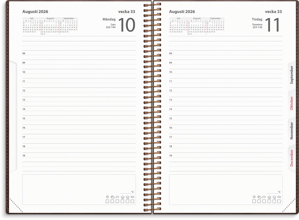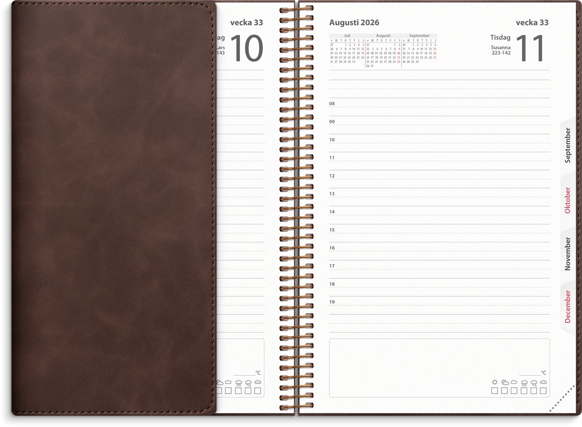 Kalender med mjuk pärm i konstläder med den populära flärpen som kan användas som bokmärke. Burdes Dagbok har en dag per sida med timindelning 08-19 vilket gör att den passar både för detaljerad planering och dagboksanteckningar. Genom att sortera dina tankar kan du lära dig mer om dig själv, få enklare att hitta lösningar på problem och dessutom bättra på minnet.
