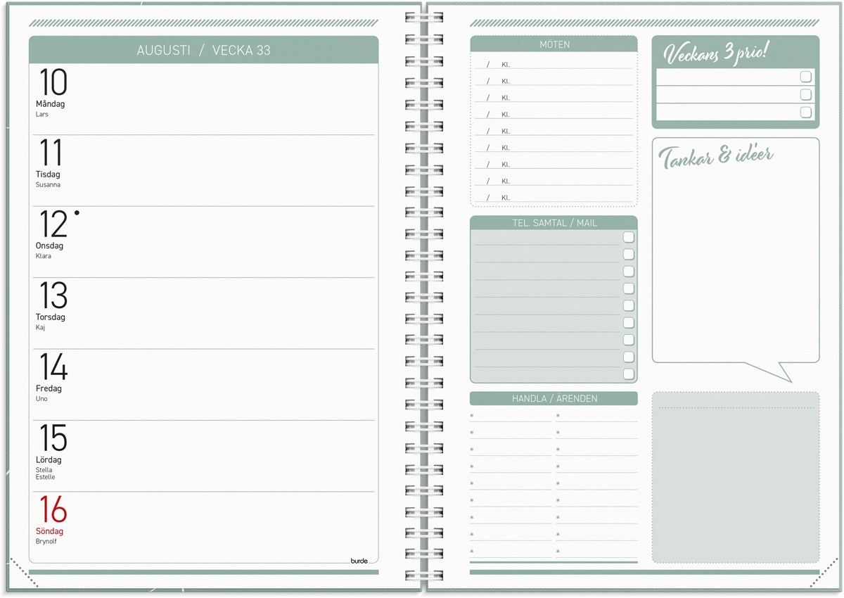 När du har mycket på gång samtidigt är det lätt att glömma bort hälften! Kalendern Få det gjort, hjälper dig att effektivisera och strukturera din vardag så att du inte behöver hålla allt i huvudet. Varje uppslag låter dig planera en vecka i taget med flera olika listor för exempelvis inköp, prio och möten.