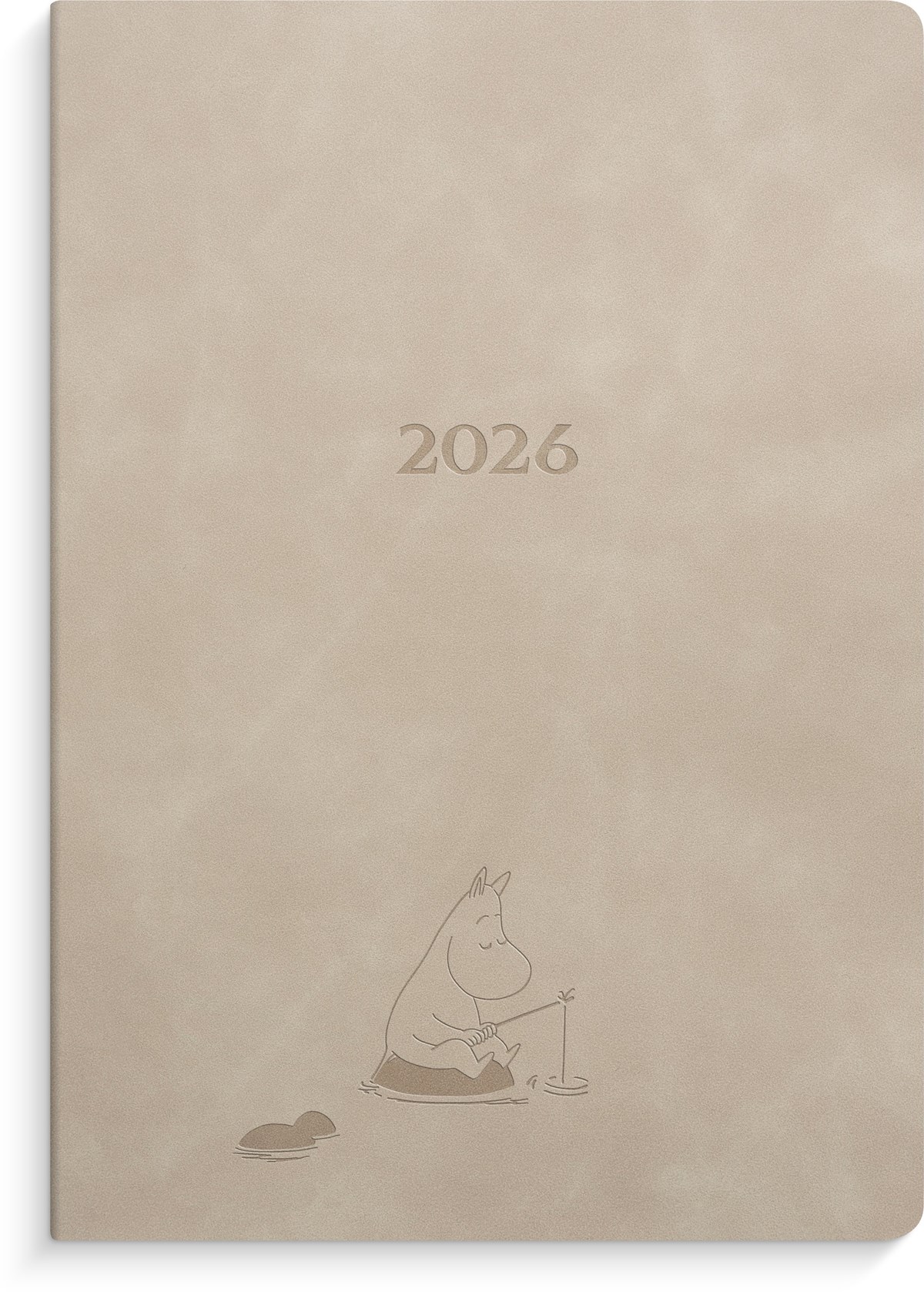 En inbunden kalender i ett sammetslent omslag i beige konstläder med ett blindpräglat Muminmotiv. Underlättar planering med fokus på livet utanför jobbet. En veckokalender med ett kalendarium för liggande planering till höger och en anteckningssida till vänster på varje uppslag. Veckouppslagen har Muminillustrationer i svartvitt. Månadsöversikter för hela året finns samlade längst fram i kalendern för överskådlig och praktisk månadsplanering. Fler anteckningssidor i slutet av kalendern ger mycket plats för noteringar.