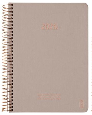 Stilren årskalender som passar för både jobb, skola och vardag i A5 eller A6 format. Välj mellan 5 olika Kozo färger. En vecka per uppslag. Minimalistisk liggande layout med plats för anteckningar i varje uppslag. Innehåller flera sorters årsplaneringar, 12 st månadsöversikter, plats för personlig information och extra linjerade sidor för anteckningar. Årsöversikter med helgdagar för 2026 och 2027.
