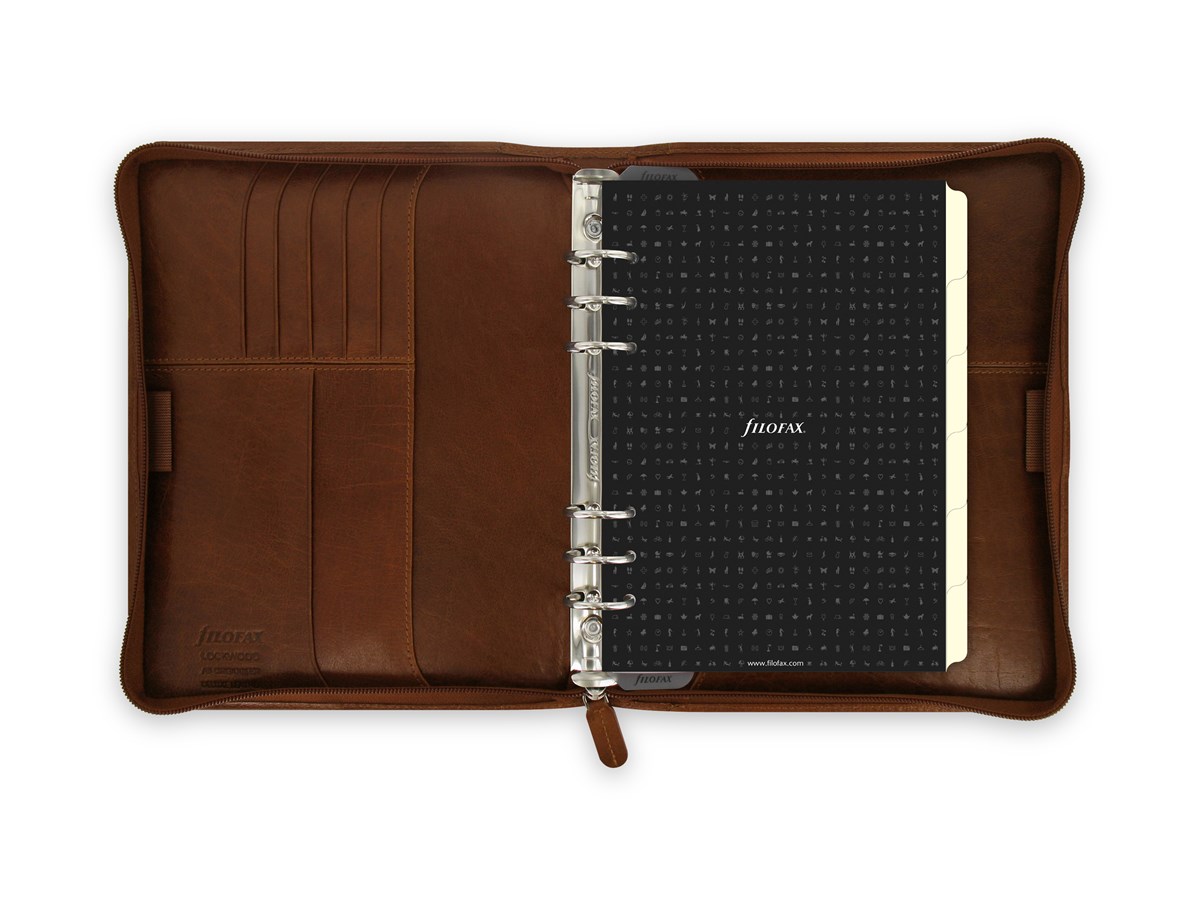 Vintage look och full av användbara funktioner. Lyxig fullnarvat buffelläder med lätt oljad, skinnande yta som lyfter fram flera toner i lädret. 25 mm ringmekanism. Pärmstorlek: 250x205x40 mm.