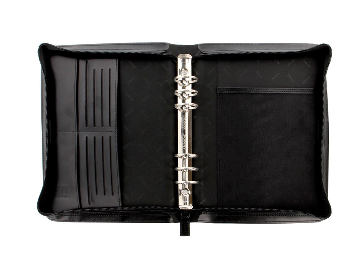 Metropol, enkel och snygg design i läderlikt konstmaterial. En smart och praktisk systemkalender för daglig användning. 30 mm ringmekanism. Pappersstorlek: 148x210 mm. Pärmstorlek: 262x205x43 mm.