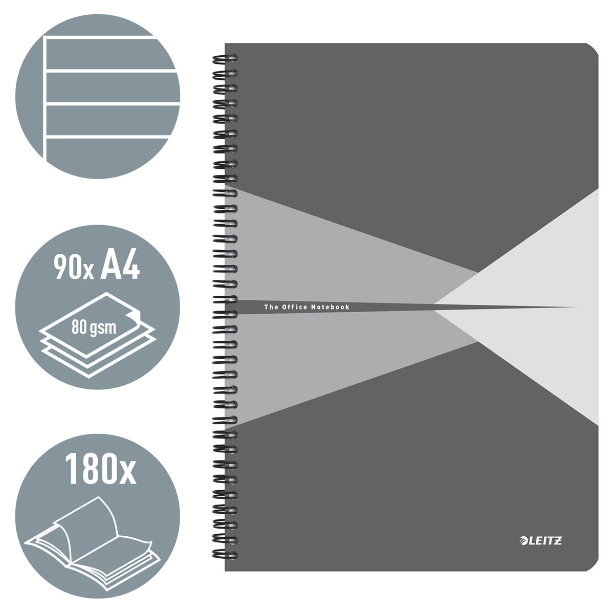 Den ultimata anteckningsboken för vardagen. Varje anteckningsbok har 180 sidor/90 ark av högkvalitativt 80 g papper, är trådbunden för 360 graders öppning och har ett tåligt PP-omslag.