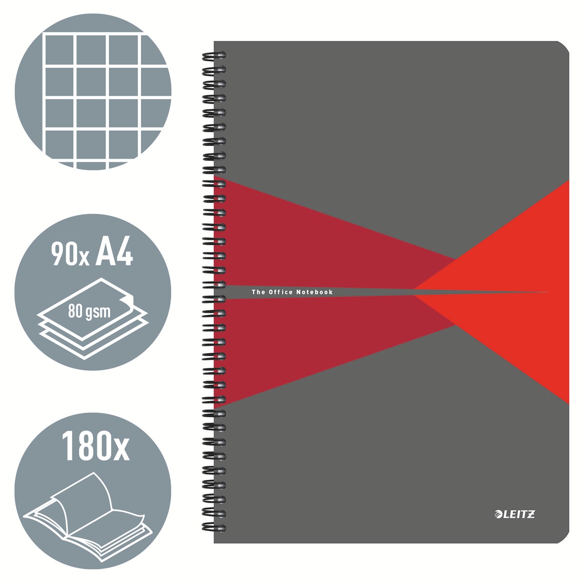 Anteckningsbok Leitz Office PP A4 rutat röd