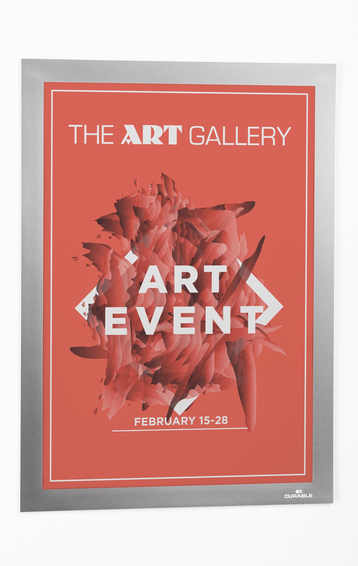 DURAFRAME® WALLPAPER – fästs med självhäftande klisterremsor. För känsliga ytor och ojämna underlag. Kan fästas på tapet, trä och flertalet plastytor och avlägsnas utan att efterlämna märken eller skada underlaget. Ersättningssats med fyra klisterremsor ingår. Innehållet kan snabbt sättas in och bytas ut tack vare den öppningsbara magnetramen. För stående och liggande format.