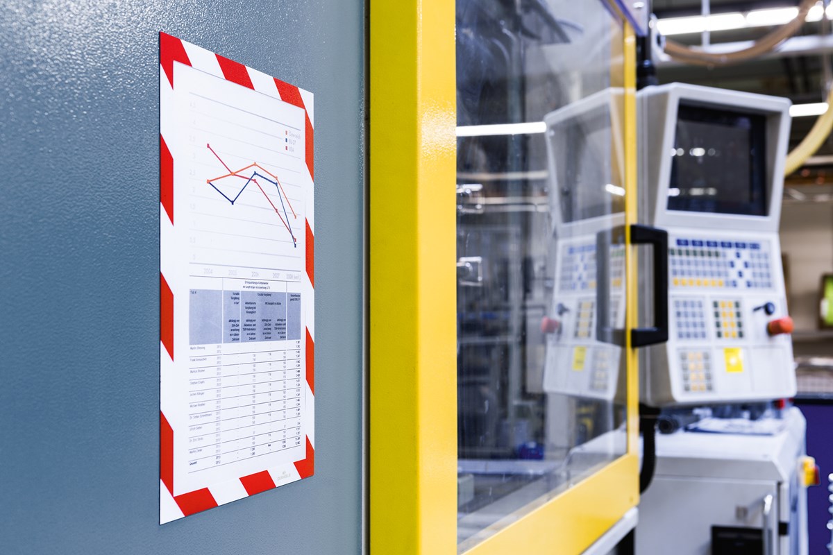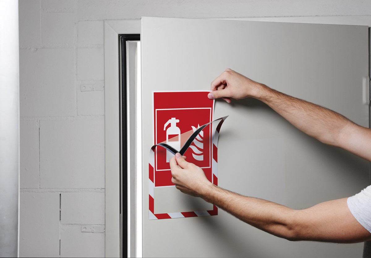 Magnetisk baksida. Med varselfärger för säkerhets- och varningsinformation i produktionsområden och på kontor. Säkerhetsfärger enligt ISO 3864-4. A4-format. För stående och liggande format. 5 st/förp.