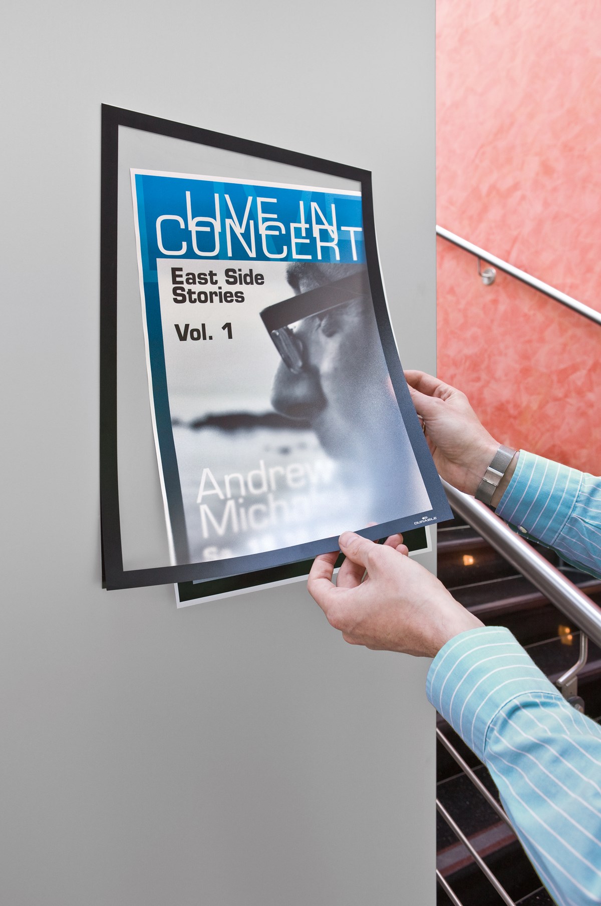 • För dokument som t.ex. öppettider, reklam och skyltar. • Innehållet kan snabbt sättas in och bytas ut tack vare den öppningsbara magnetramen. • Lätt att sätta upp – utan spik, verktyg eller hål i väggen. • Kan fästas på alla fasta och släta ytor. Vid användning på glas är informationen läsbar från båda sidor. Undvik att fästa på ytor som tapeter, porösa material och non-stick-ytor. Målade ytor kan ev. skadas om ramen tas bort.