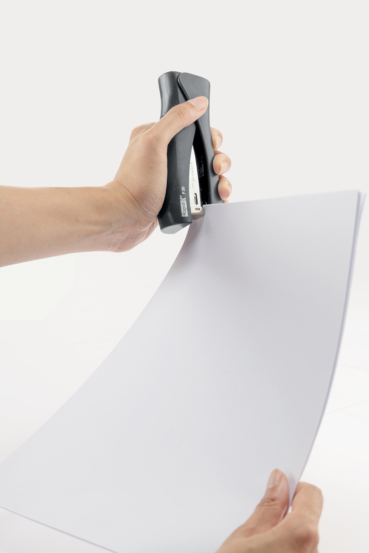 Bekväm högpresterande upprätt häftapparat med stålmekanism och ergonomiskt gummihandtag. Perfekt för hem och kontor. Häftar upp till 20 ark papper. För 24/6 och 26/6 Rapid Strong häftklammer.