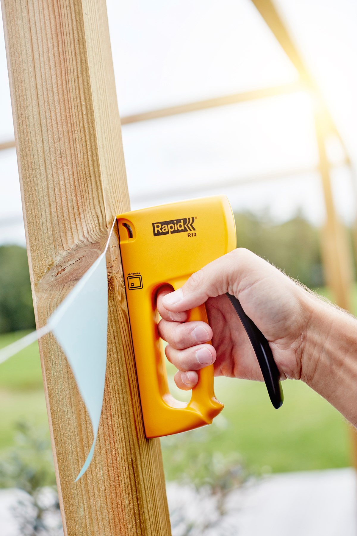 Häftpistol i slagtålig plast för hemanvändare som ställer krav på prestanda och allsidighet. Lämplig för omklädning av möbler, fastsättning av tunnare material, läder papper samt etiketter. För klammer nr. 13, 4–10 mm. 3 års garanti.