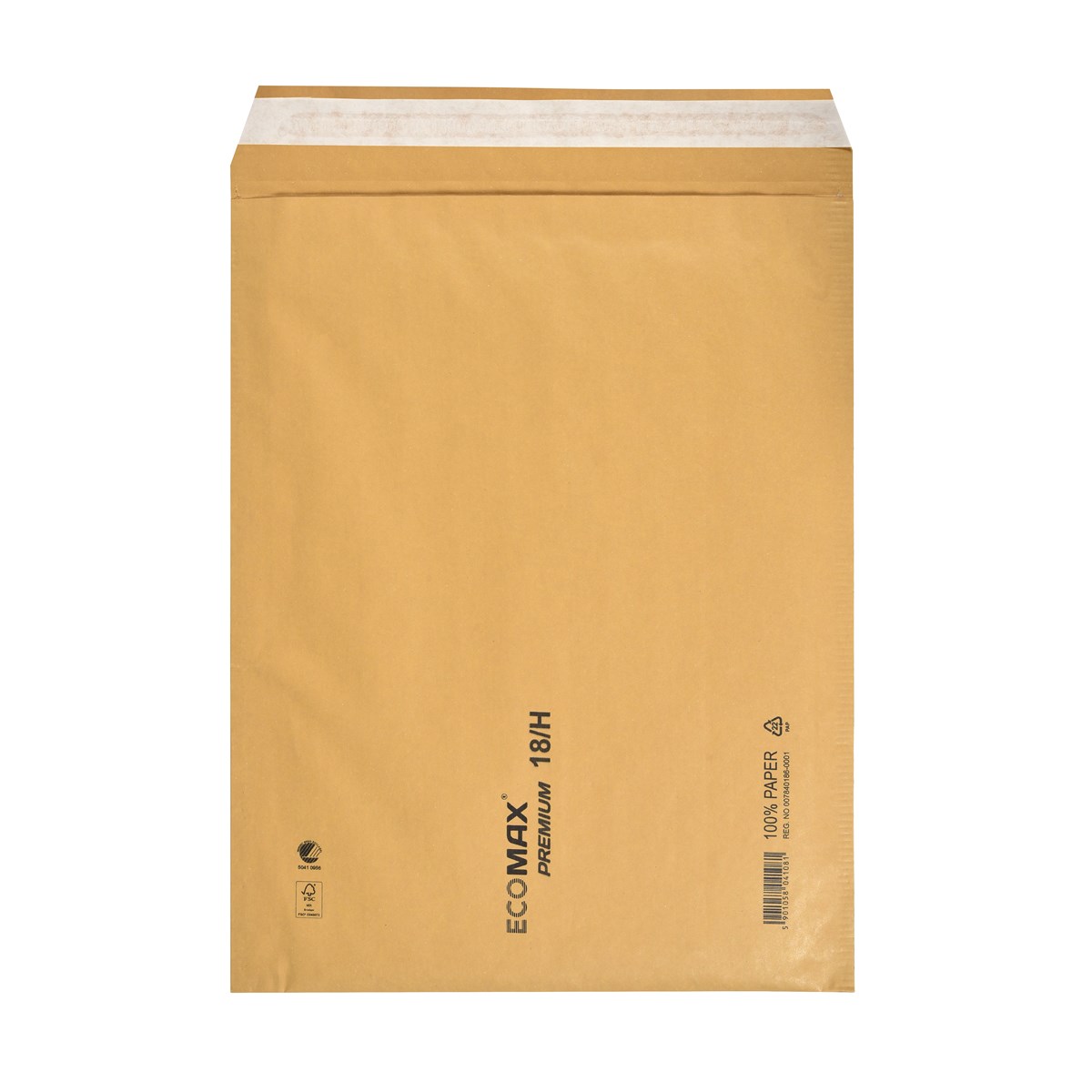 Ecomax Premium är helt plastfria vadderade kuvert för frakt och förvaring av känsliga föremål. De är väldigt lätta, vilket innebär lägre fraktkostnader. Kuverten är gjorda av 6 lager starkt och vattenavvisande obestruket papper. Insidan är fodrad med ett dubbelt skyddande lager av 100 g bubbelpapper, vilket gör kuvertet styvt, dämpar stötar och minimerar revor, veck samt hindrar att kuvertet slits sönder.