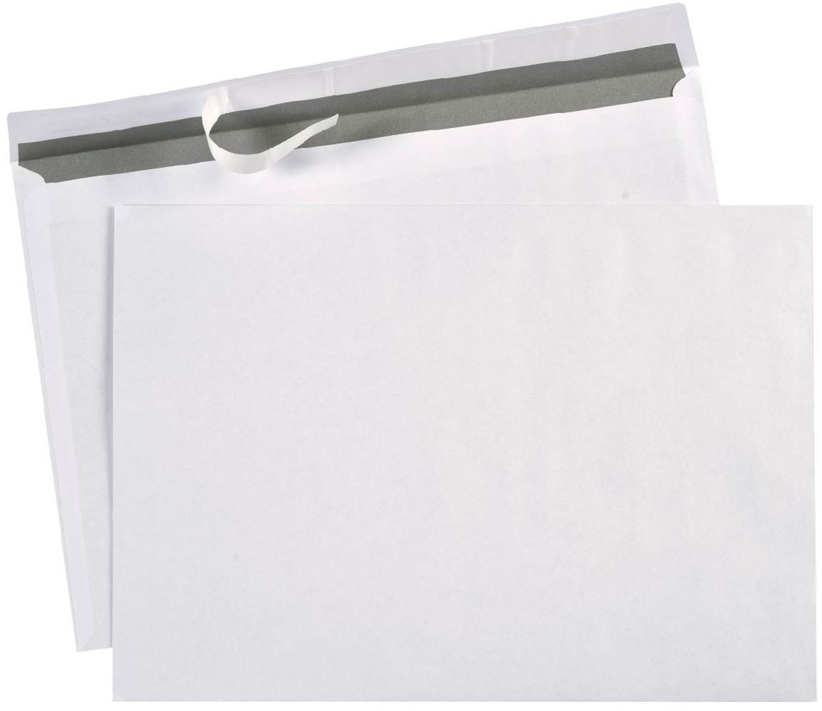 Självhäftande kuvert med Peel & Seal. Vitt kuvert med grått innertryck. Konsumentpackade.