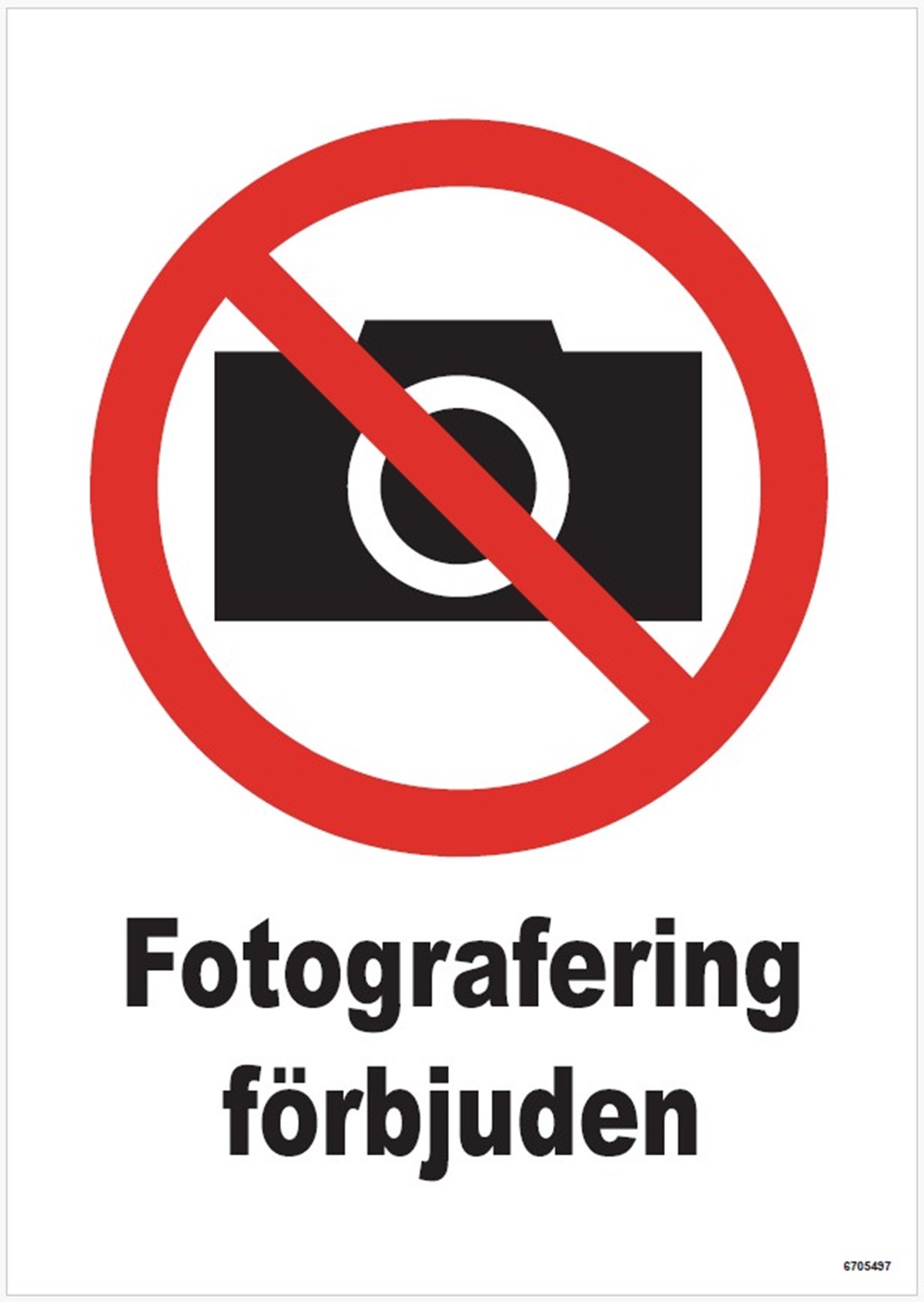 Skylt i plast med texten Fotografering förbjuden. Mått: A4, 210x297 mm.