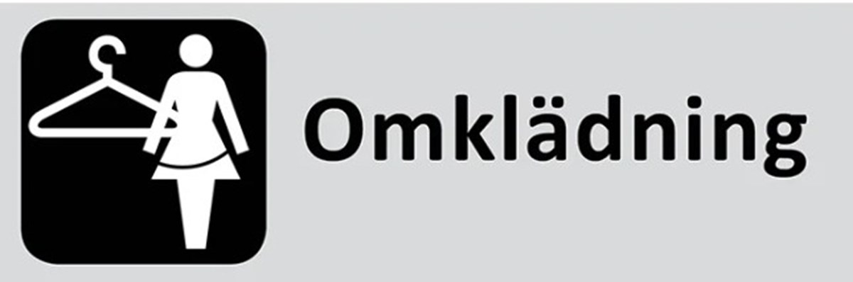 Skylt Omklädning Dam 225x80 mm