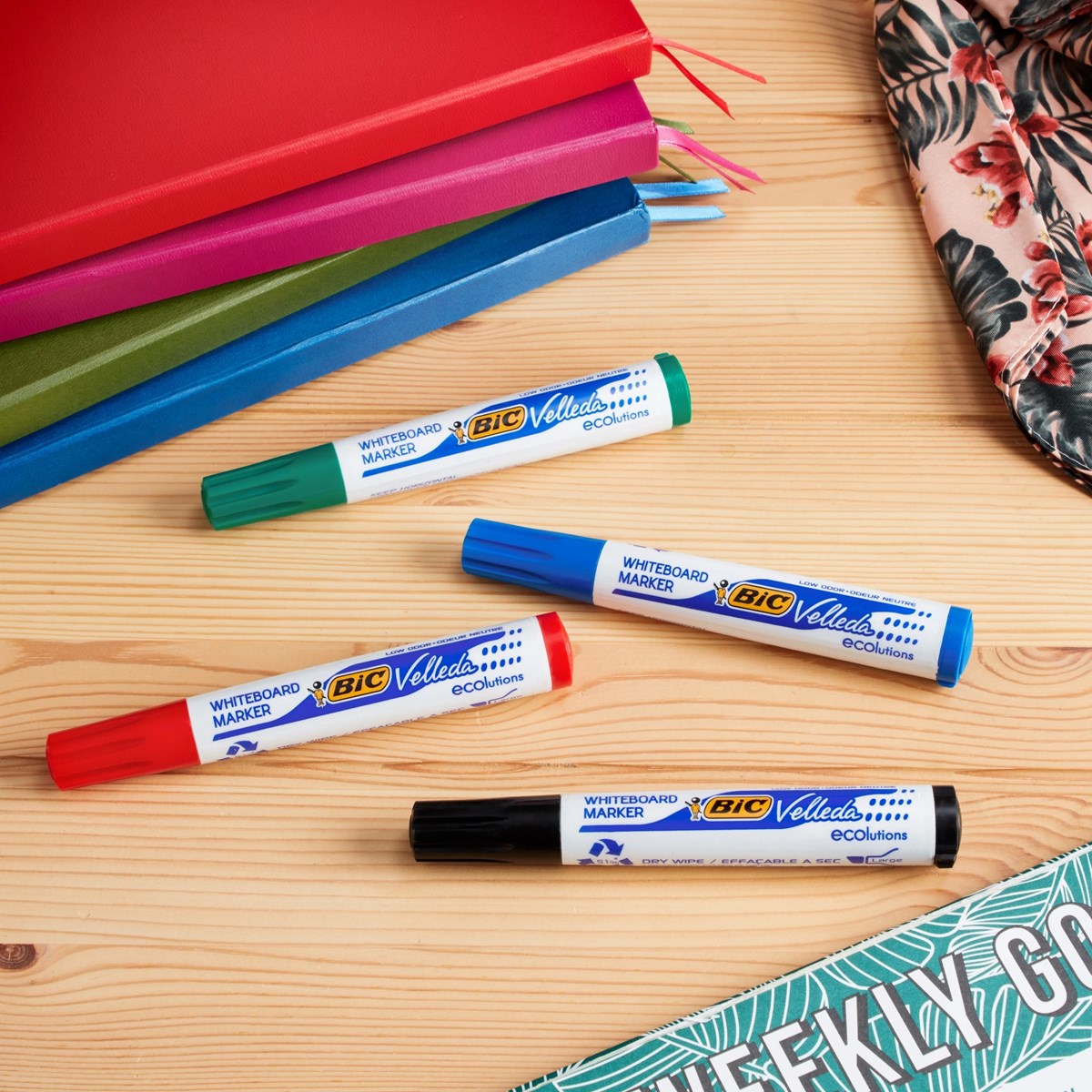 Whiteboardpenna med snedskuren spets är perfekta för professionell användning när man vill skapa tydliga och snygga presentationer Whiteboard-bläcket är i princip luktfritt och lätt att torka av – även efter flera dagar. Perfekt för längre skrivuppgifter. Skrivbredd från 3,7 mm till 5,5 mm. Tillverkas i Europa av 51 % återvunnet material (omfattar ej bläcksystemet). Set om 4 färger i svart, blå, röd och grön.