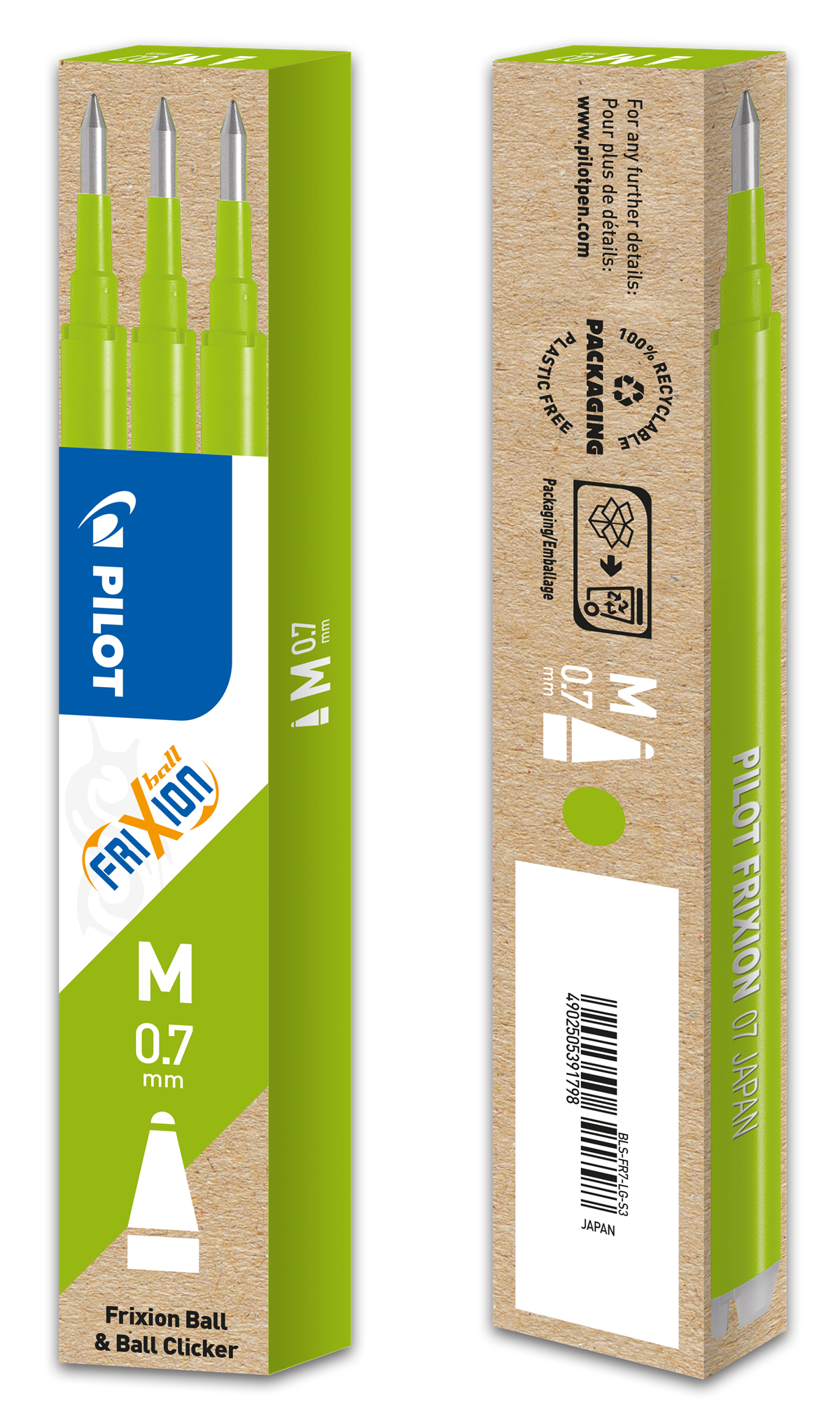 Kulpatron Pilot Frixion 0,7 mm ljusgrön 3/fp