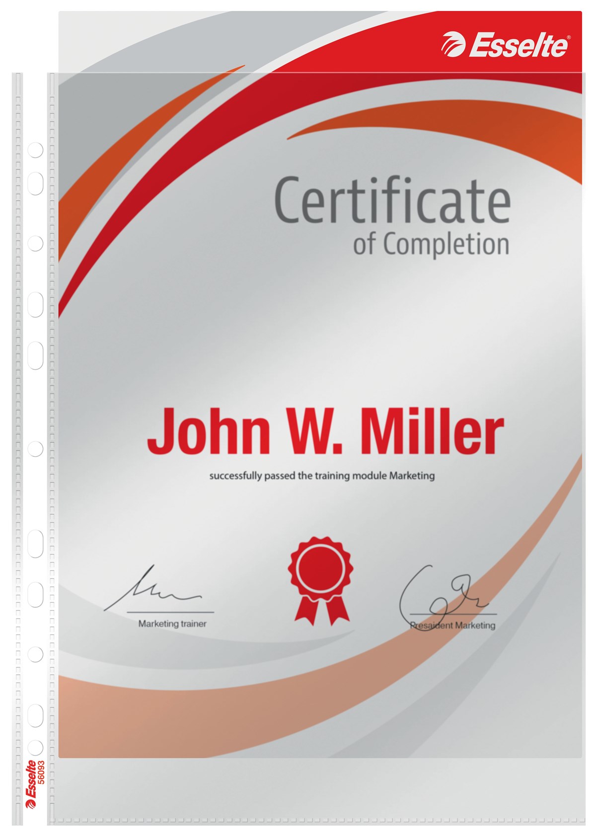 Stark ficka för konstant, dagligt bruk. Praktisk förvaring av dokument i gaffelpärmar och ringpärmar. Öppning upptill för enkel borttagning av papper utan att frigöra pärmmekanism. A4-format. 105 my. Glasklar.