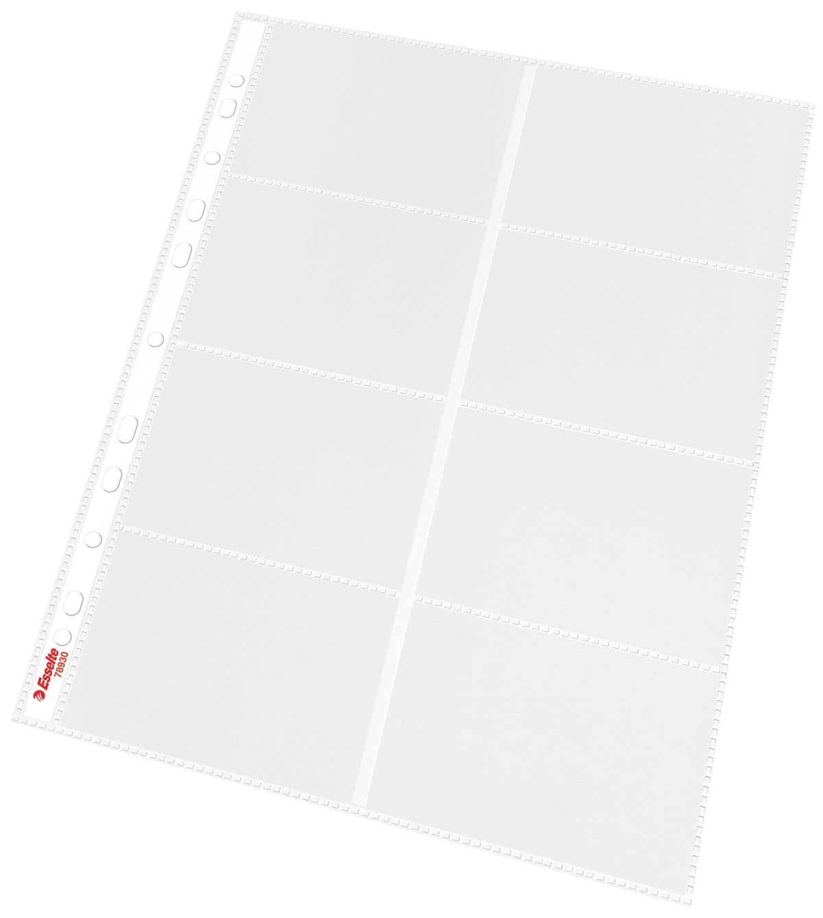 Ficka med 8 fack för visitkort. Multistansad hålremsa för praktisk förvaring av visitkort i gaffelpärm eller ringpärm.