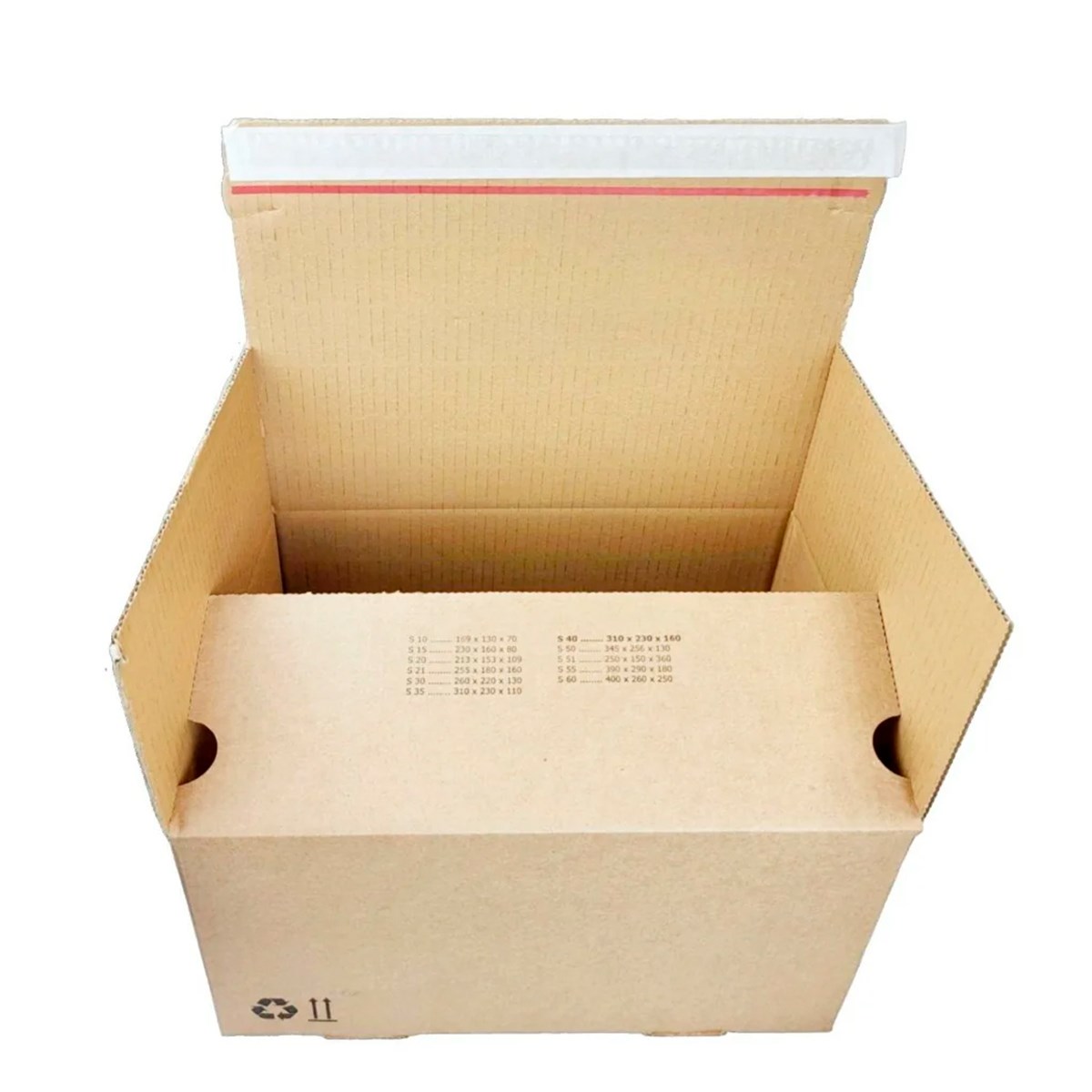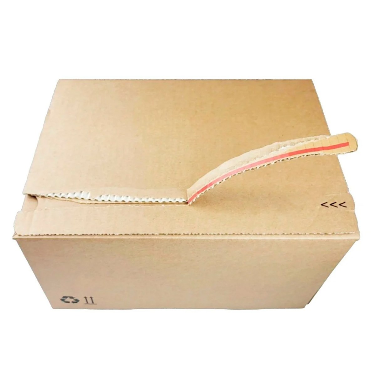 Smidig låda med Peal and Seal-stängning. Den självhäftande remsan gör att kartongen kan stängas utan att använda tejp. Utrustad med en rivtejp som gör att den enkelt kan öppnas. Lådan går snabbt att montera och packa eftersom den har en automatisk stängning i botten. FEFCO 703.