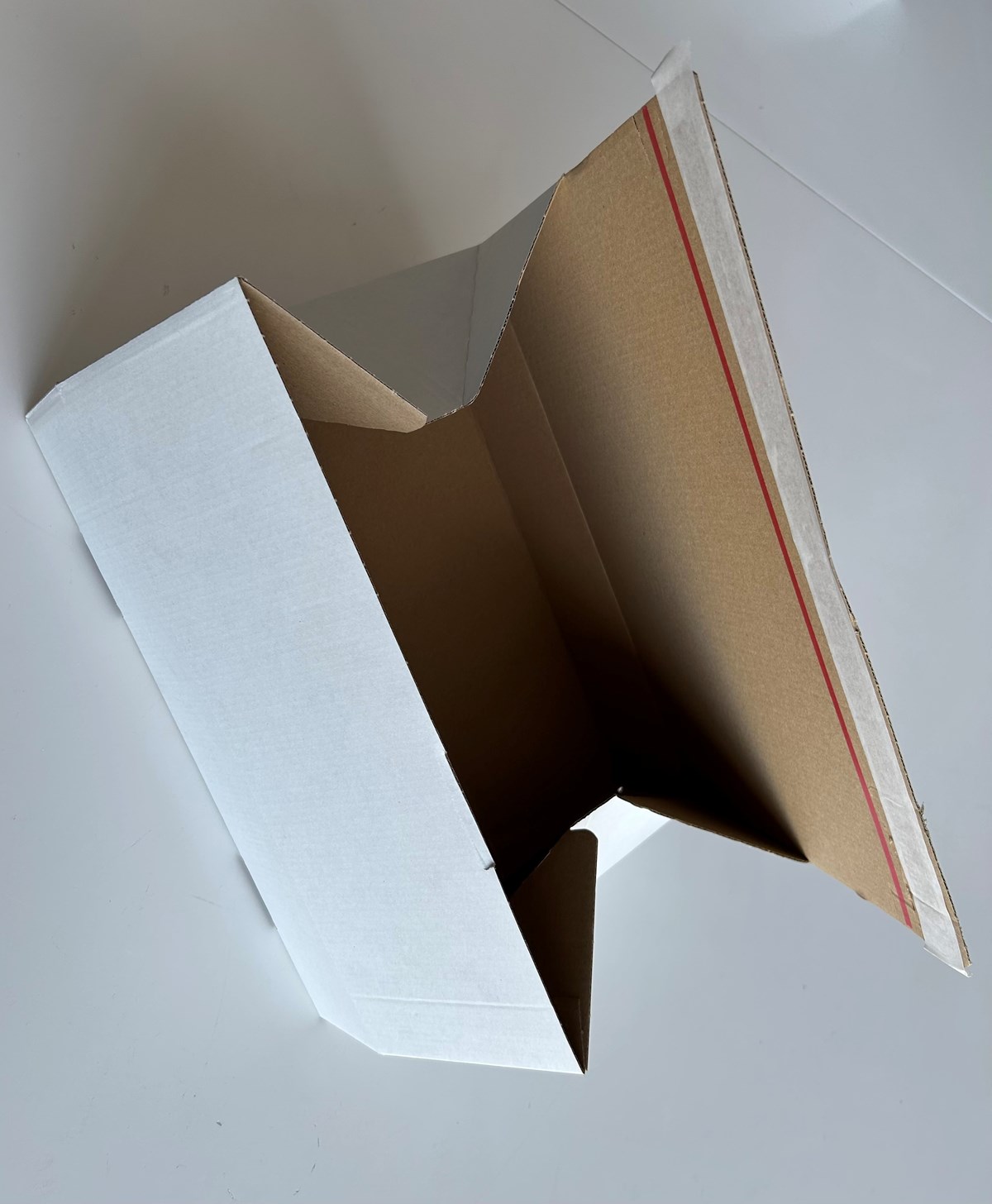 Förtejpad e-handelslåda med snabbotten vilket innebär att kartongen kan resas och förslutas mycket snabbt utan behov av ytterligare tejp. Anpassade efter Postnords storlekskrav för varor på max 2 kilo som skickas till kundens brevlåda, postbox eller fastighetsbox. Fefco 703.