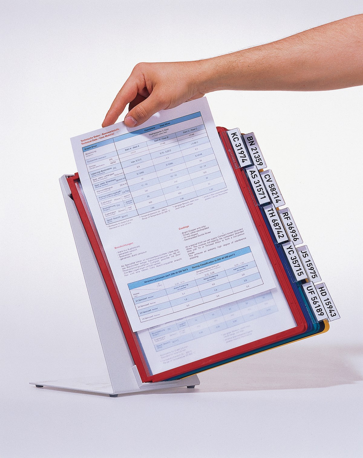 Rejält ställ i metall. Levereras med paneler och transparenta rubrikhållare (58 mm). Stabilt och reptåligt. 5 års garanti.