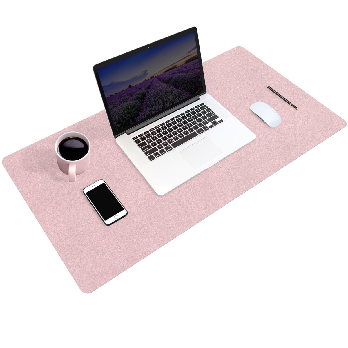 Skrivbordsunderlägg i slitstarkt och hållbart konstläder (PU). Dubbelsidigt, välj färg efter humör eller matcha omgivningen. Längden på 90 cm gör att underlägget täcker bordsytan för både tangentbord, mus och kaffekoppen och lite till. Kan användas som musmatta. Tål vatten.