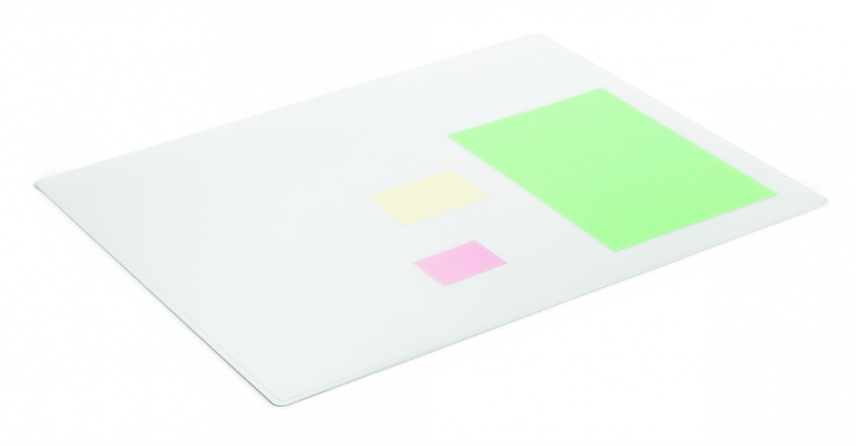 Transparent, icke reflekterande skrivbordsunderlägg av PP. Anteckningar kan förvaras lättillgängligt och synligt under skrivunderlägget.