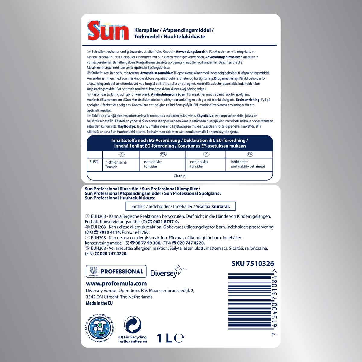 Sun Professional Spolglans ger snabb torkning och ett skinande resultat för ditt porslin, bestick, glas, kastruller, stekpannor och köksredskap.