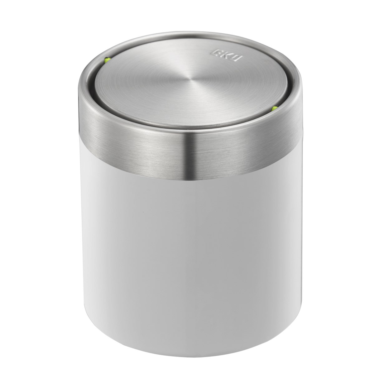 Designat litet sopkärl för bordsplacering. Det tysta vipplocket gungar tillbaka och håller kärlet stängt. Mått: 121 x 121 x 136 mm.