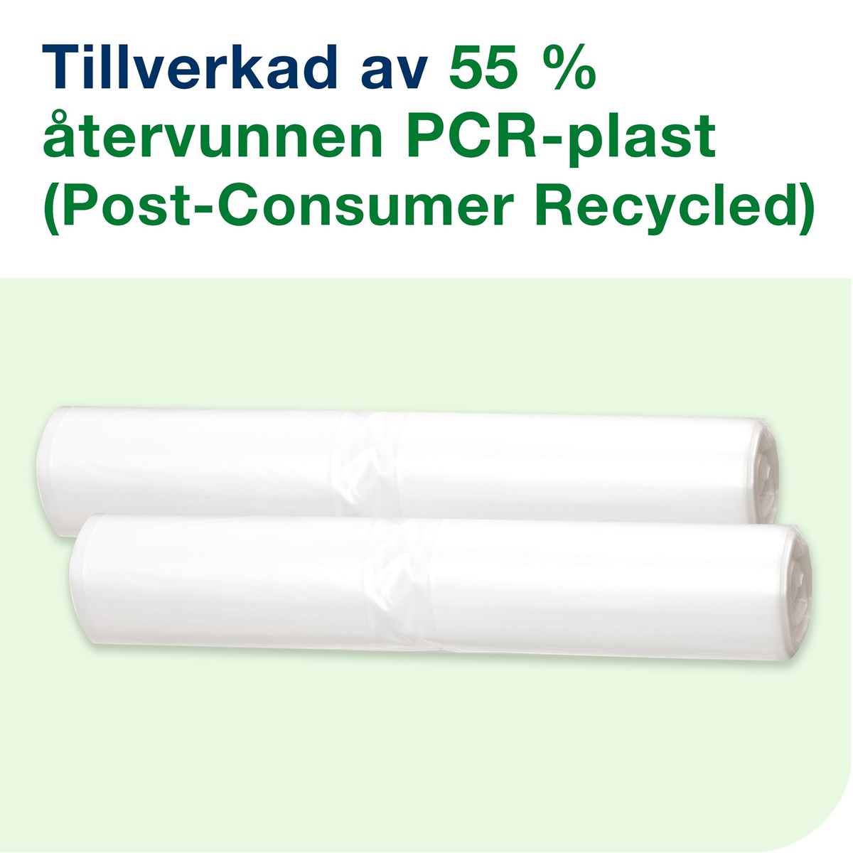 Framtagna för att det ska vara enkelt att tömma och fylla på papperskorgar Högkvalitativ, tjock kvalitet för utmärkt prestanda Levereras som rullar för enkel användning Högre kapacitet betyder färre byten