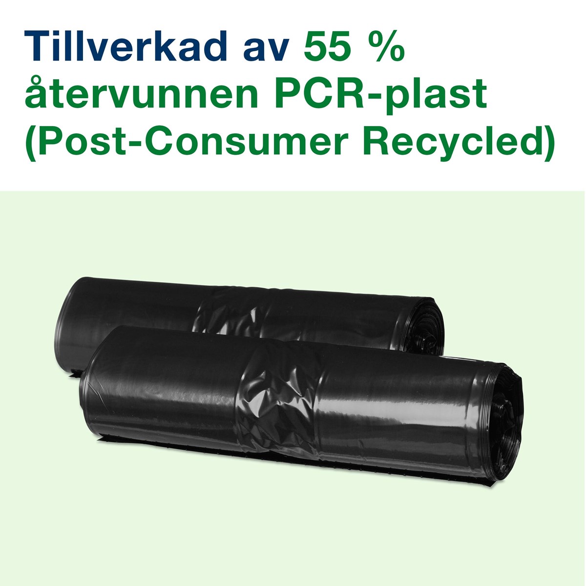 Håll papperskorgar i alla utrymmen snygga och maximera hygienen med Tork 5-liters soppåsar. Personalen kan snabbt tömma och fylla på avfalls- och förvaringskärl med våra lättanvända rullar, vilket säkerställer att underhålls- och städrutiner fungerar smidigt. Kilförseglingsfunktionen minskar också risken för revor och spill vid avfallshantering. Du gör även ett hållbart val genom att välja en soppåse som är gjord av 55 % återvunnet material.
