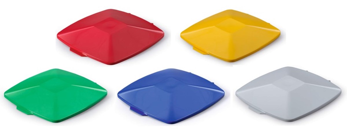 Komplettera tunnan Durabin Kvadrat 40-liters med ett lock. Locket sitter fast i bakkant så att det går att fälla upp med en hand och inte behöver lyftas av från tunnan. Visuell överblick och orientering med hjälp av olika färger på locket vid t.ex. källsortering.
