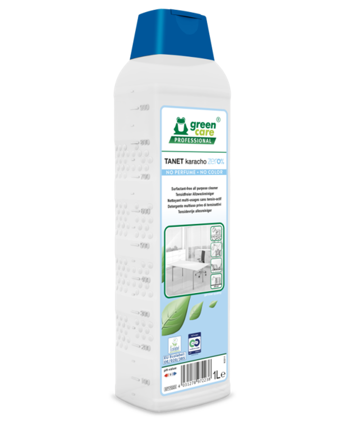 TANET karacho zero% är exceptionellt material- och miljövänligt tack vare avsaknad av tensider, enzymer och optiska blekmedel, vilket även gör det lämpligt för rengöring av mattor, textilytor och stoppade möbler. Det värnar om människors hälsa och rengöringspersonalens säkerhet.