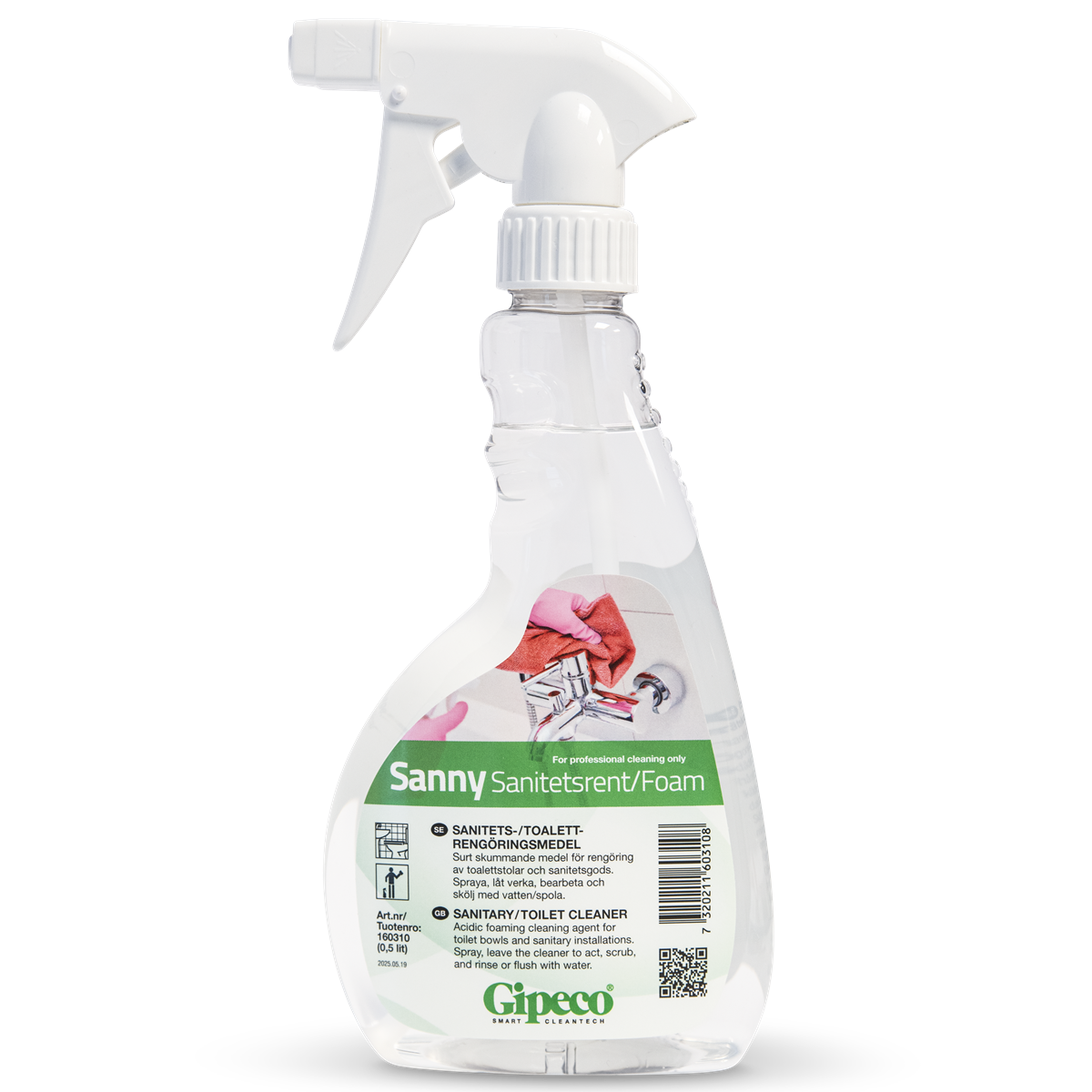 Högskummande surt sprayrengöringsmedel för effektiv rengöring av sanitetsgods som handfat, toalettstolar och duschväggar etc. Spraya, låt verka och torka av. Löser snabbt och effektivt hud-, tvål- och smutsavlagringar samt lättare kalkbeläggningar. Har en god kalk- och bakteriehämmande effekt.
