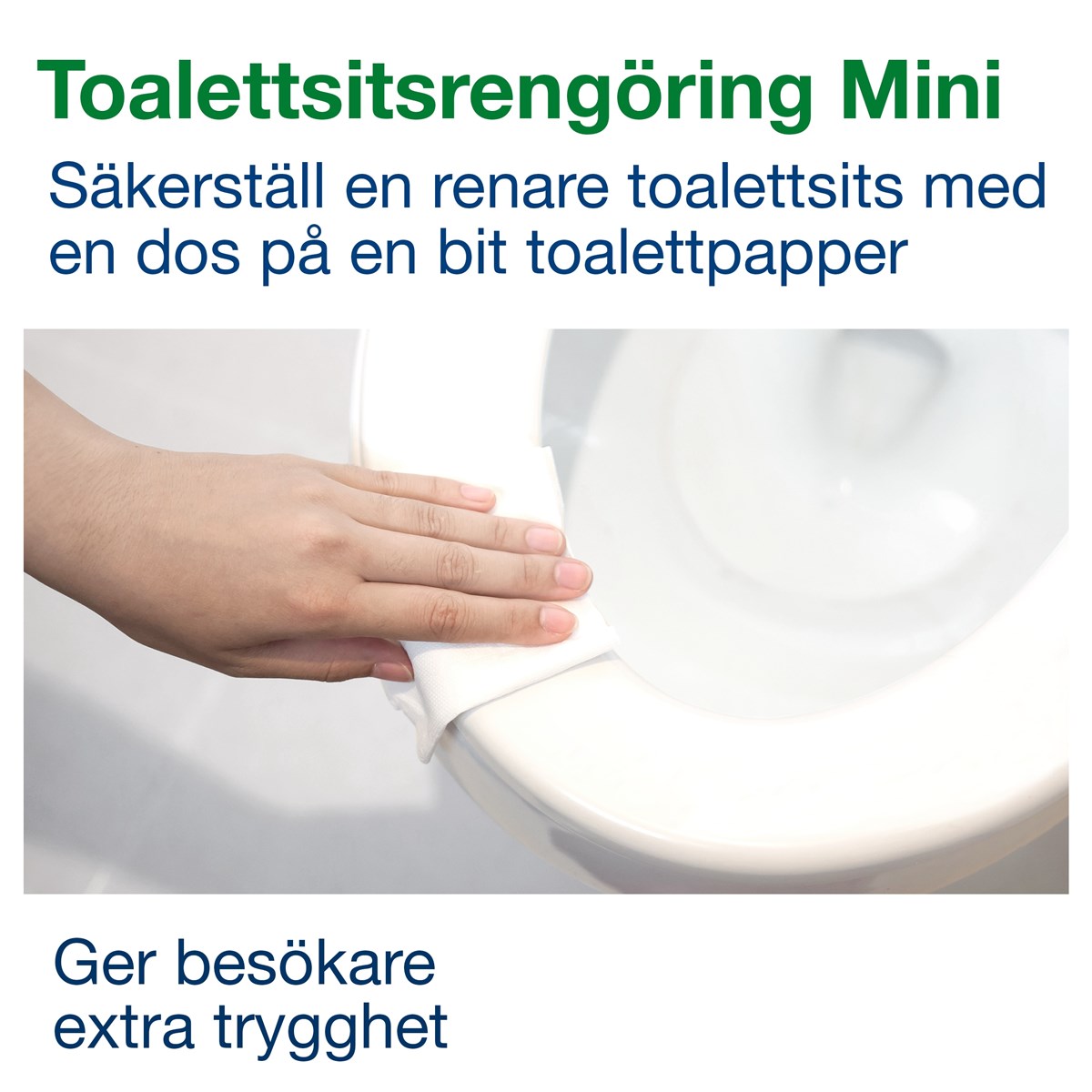 Tork Toalettsitsrengöring ger extra trygghet för besökare. Säkerställ en renare toalettsits med en dos toalettsitsrengöring på en bit toalettpapper. Denna refill passar med Tork Dispenser Tvål och Handsprit Mini och är bevisat lätt att använda.