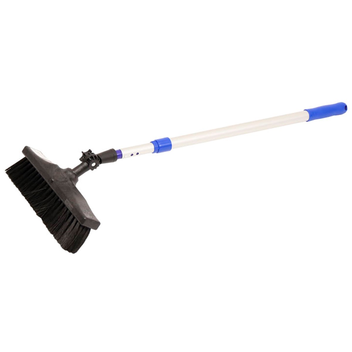 Professionell snöborste med teleskopskaft (79-130 cm). Med den 30 cm breda borsten, reglerbar vinkel och ett teleskopskaft kan du anpassa snöborsten efter behov. Fungerar utmärkt oavsett om du har en mindre bil eller en större transportbil. Du kan arbeta med tvåhandsfattning och du undviker att få snö på dig.