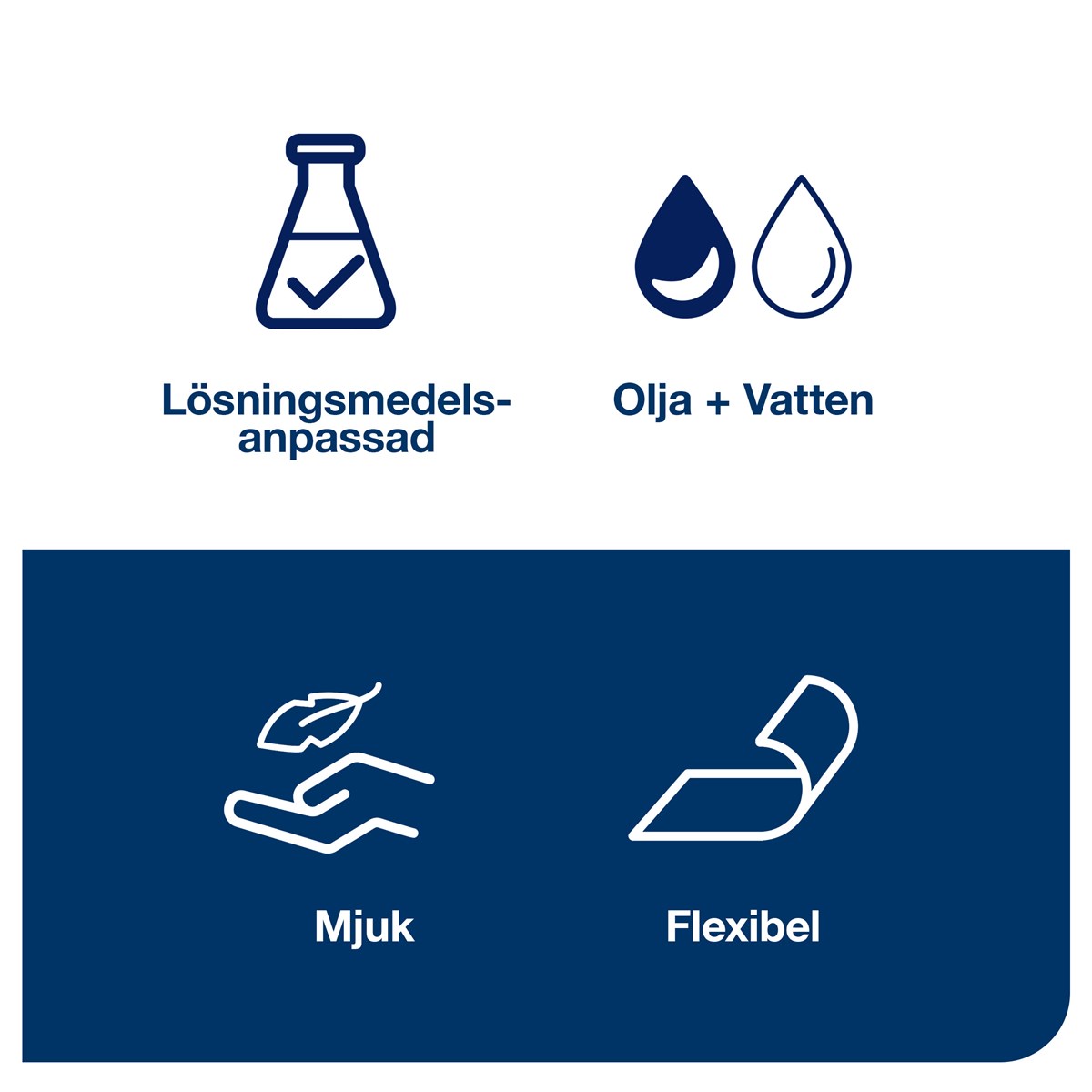 Mjuk och flexibel rengöringsduk för svåråtkomliga utrymmen Hanterar olja, vätskor och smuts exelCLEAN® minskar lösningsmedelsförbrukningen med upp till 41 % Bärbar Handy-box för effektivitet Återvunnen förpackning