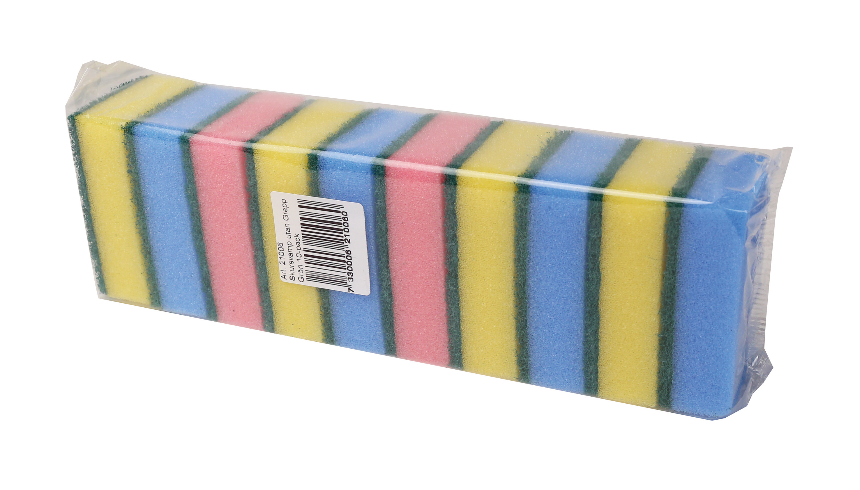 Små skursvampar med vitt nylon. Repar ej. Mått: 55x85mm 10 st/förp.