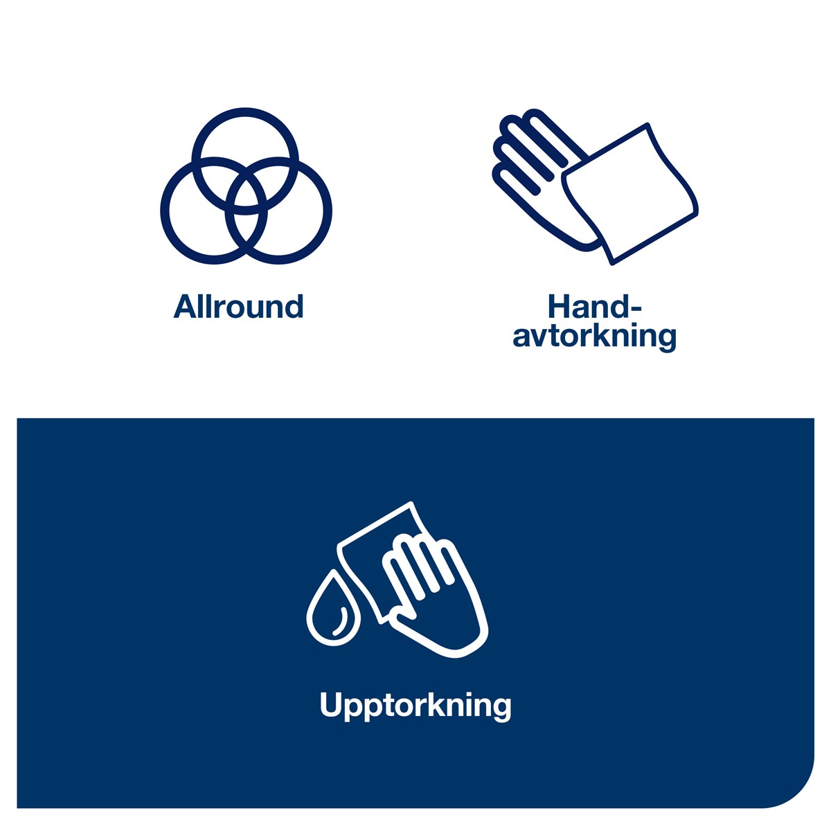 2-lagerspappret i allround-kvalitet är slitstarkt och absorberande Rengör effektivt lätt smutsade ytor och händer Obegränsad utmatning gör att användare kan ta vad de behöver Enkel att använda med en hand Tork slutindikator hjälper till att planera byten av rullar